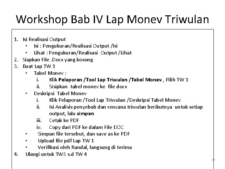Acuan standar format pelaksanaan sampai dengan penulisan laporan bagi.
